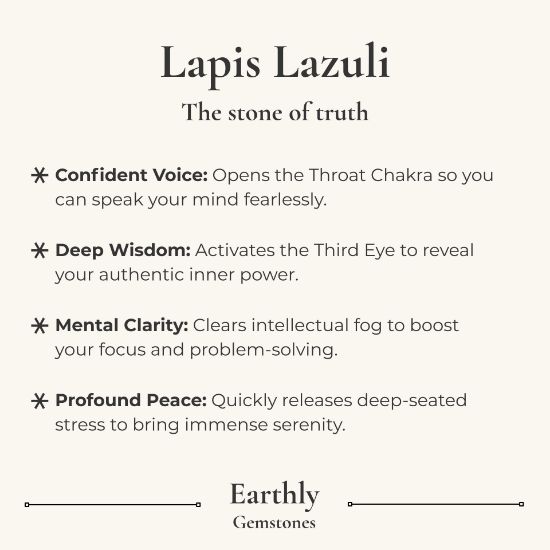 Lapis Lazuli is a deep blue metamorphic rock flecked with gold pyrite that has been used in spiritual and healing practice for over 6,000 years. Connected to the Third Eye and Throat chakras, it is associated with truth, clear communication, and the kind of inner honesty that requires setting aside what you want to be true in favour of what actually is. As a pendulum stone, Lapis Lazuli is particularly effective for questions where self-deception is a risk, where a difficult truth needs to be acknowledged, or where honest communication is at the centre of the issue.